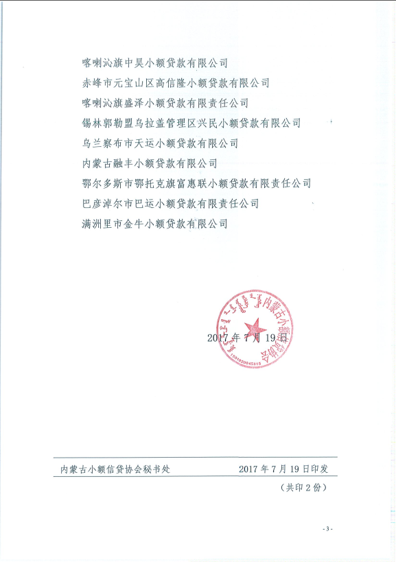 2016 год - это десятый год экспериментальной работы микрофинансовой компании во Внутренней Монголии, а также третий год создания небольшой кредитной компании Wulanchabu City, дочерней компании нашей группы. Хотя время создания короткое, компания строго следуетНациональные и местные правила, предназначенные для работы в сельских районах в качестве фокуса, для решения финансовых потребностей конечного пользователя в целях содействия развитию сельских районов, фермеры увеличивают мои цели в области развития, являются компетентными департаментами и похвалой сообщества.Wulanchabu City Tianyun Small Loan Co., Ltd. будет продолжать перерабатывать в будущем «осуществлять отраслевую самодисциплину, защищать отраслевые интересы, предоставлять членские услуги для содействия развитию отрасли» с целью реализации автономного региона в работе по развертыванию,Усилия в местных сельских районах города Вуланчабу, развитие сельского хозяйства для оказания услуг и серьезное проведение работы.