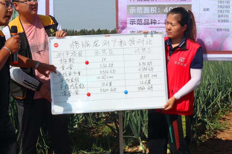 针对用过肥料之后洋葱的具体表现,由种植户亲自进行讲解,因为有切身的感受,种植户表示对我公司肥料及配方非常有信心。