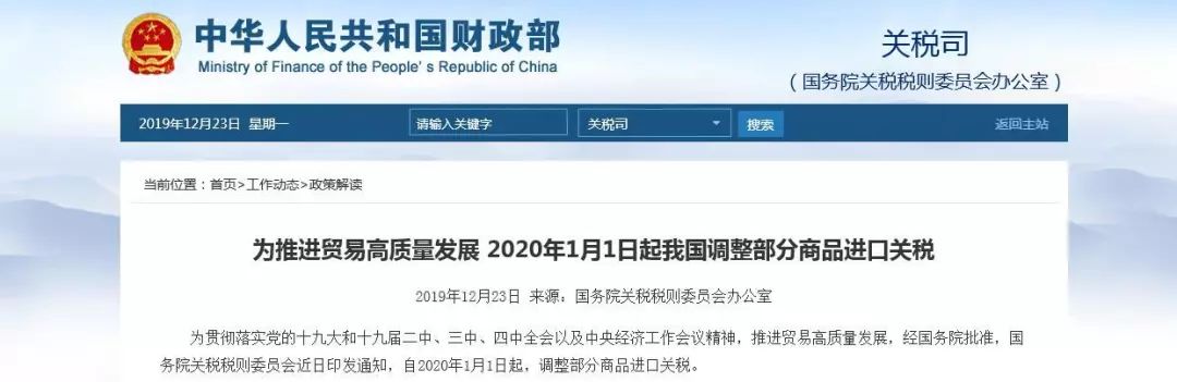 作为年底最重要的政策之一,进出口关税 调整终于出炉!为贯彻落实党的十九大和十九届二中、三中、四中全会以及中央经济工作会议精神,推进贸易高质量发展,经国务院批准,国务院关税税则委员会近日印发通知,自2020年1月1日起,我国将对850余项商品实施低于最惠国税率的进口暂定税率。