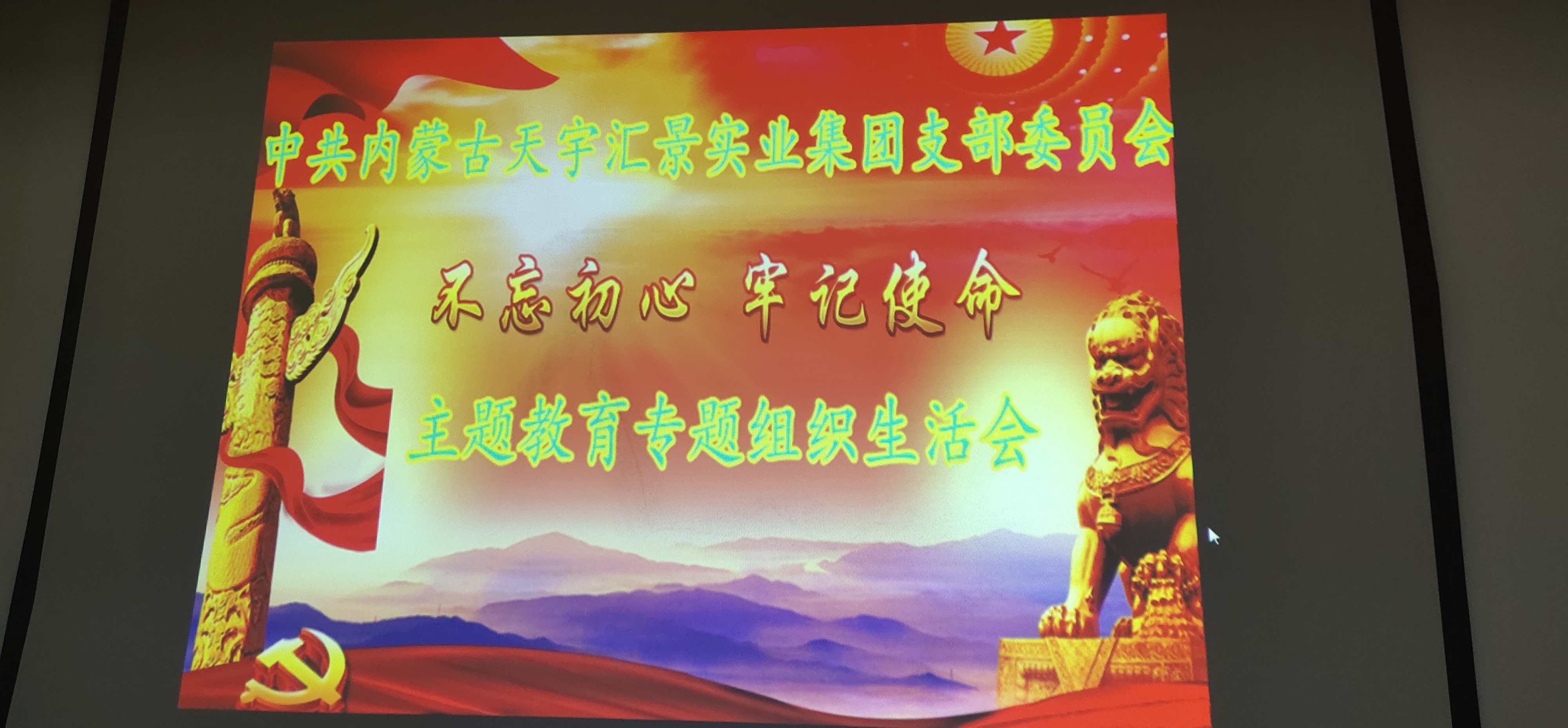 为了深入学习习近平新时代中国特色社会主义思想和党的十九大会议精神、学习领会习近平总书记在“不忘初心、牢记使命”主题教育工作会议精神,按照集宁区委组织部非公企党工委下发的《关于做好专题组织生活会的相关要求》,我支部认真做好会前准备,制定详细方案,于12月27日上午,召开中共内蒙古天宇汇景实业集团党支部2019年度“不忘初心、牢记使命”专题组织生活会。
