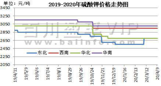 本周(2020.4.2-2020.4.9)硫酸钾市场观望气氛较浓,开工持续恢复中,新单成交有所回落,以前期订单发运为主,市场价格稳中有小幅松动趋势。