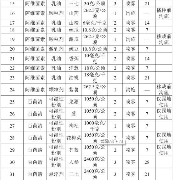 附件:特色小宗作物农药残留风险控制技术指标(表格部分内容)