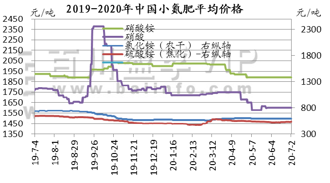 本周(2020.6.29-2020.7.2)华中地区一铵出厂报价上调以提振市场,下游需求渐起,多数企业签单量较大,加之出口行情好转,一铵行业库存下降,企业产销压力小,进一步刺激市场,成交价格稳中向上趋势。整体来看一铵行业开工小幅上涨,但企业前期订单量大,影响不大。
