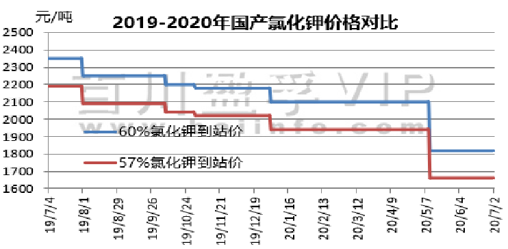 本周(2020.6.28-2020.7.2)氯化钾市场观望企稳,市场按需采购,整体库存量充足,但大合同新货源到货量较少,部分港口白钾货源现货较少,价格企稳。盐湖7月价格未调整。