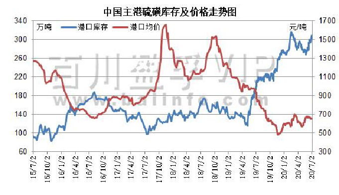 本周(2020.6.29-2020.7.2)国产硫磺市场行情维持稳定,各地区供销情况平稳运行。东北地区,固、液硫价格均有小幅上涨,大连地区某炼厂船运价格较上周窄幅上调。华北地区国产硫磺价格稳定,天津石化全厂检修结束,近期准备开工复产,预计7月15日左右出货,当月产量暂不确定。山东地区,个别地方炼厂报价仍有小幅回落。由于6月下旬进口液硫货船陆续抵港,供应面压力稍有缓解,下游工厂按需回运,对于“高价”国产货源抵触加深,因此区内国产硫磺价格较前期窄幅下探。整体来看,国内硫磺市场延续淡稳格局,国内炼厂开工平稳,随着部分炼厂复产提量,国产硫磺供应量有增无减。