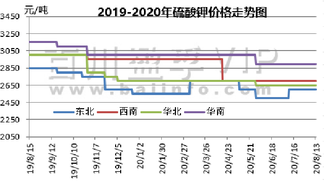 本周(2020.8.6-2020.8.13)硫酸钾市场坚挺企稳,市场交投较好,部分可售现货货源偏紧。