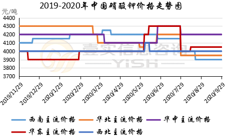 价格方面:华东地区农业级硝酸钾出厂报价在4000元/吨左右,工业级硝酸钾为4150元/吨左右;华北地区农业级硝酸钾价格在4000元/吨左右,工业级在4200-4300元/吨;西南地区价格维持弱稳,农业级硝酸钾价格在3800元/吨左右,工业级硝酸钾主流出厂报价在3900-4000元/吨;西北地区现货相对其他地区较少,西北地区主流出厂价格稳定在4000元/吨。