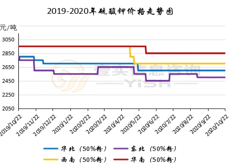 2020.10.15-2020.10.22硫酸钾市场维持观望盘整态势,原料成本增加,云南烟草招标对市场供应有一定消化,市场价格有回升趋势。