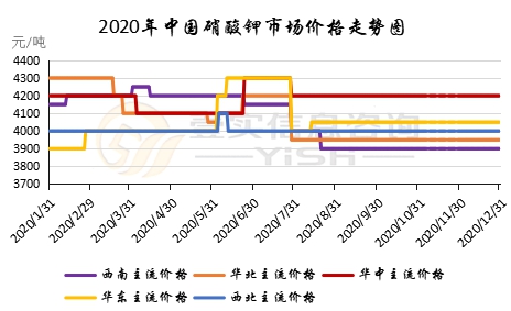 价格方面:华东地区农业级硝酸钾出厂报价在4000元/吨左右,工业级硝酸钾为4150元/吨左右;华北地区农业级硝酸钾价格在4000元/吨左右,工业级在4200-4300元/吨;西南地区价格维持弱稳,农业级硝酸钾价格在3900元/吨左右,工业级硝酸钾主流出厂报价在4000-4100元/吨;西北地区现货相对其他地区较少,西北地区主流出厂价格稳定在4000元/吨。