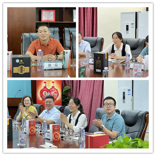 6月28日下午,贵州习酒公司“名酒进民企”活动走进天宇汇景实业集团。贵州习酒公司内蒙区总经理敖应与内蒙古乐酒商茂总经理张利君一行莅临天宇汇景集团总部,参观了集团总部,了解了我集团公司的发展历程等基本情况;随后集团总部董事会秘书富永红及经营及市场营销管理中心罗经理等与敖总一行进行了座谈交流。
