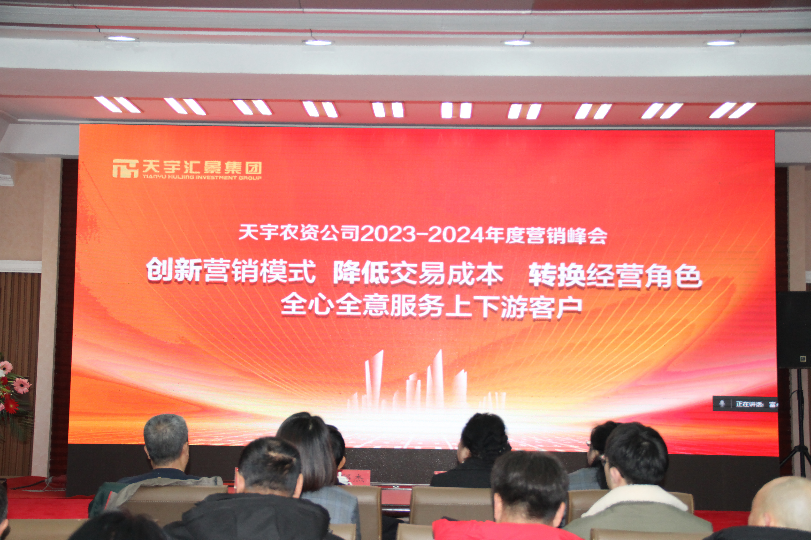 2023年12月12日“天宇农资公司2023-2024 年度营销峰会”种植户大会在集团集宁园区圆满召开,本次峰会以“创新营销模式,降低交易成本,转换经营角色,全心全意服务上下游客户”为主题,政府农牧业局农技推广中心技术领导、2家上游供货商和120多位种植户参加了本次会议。