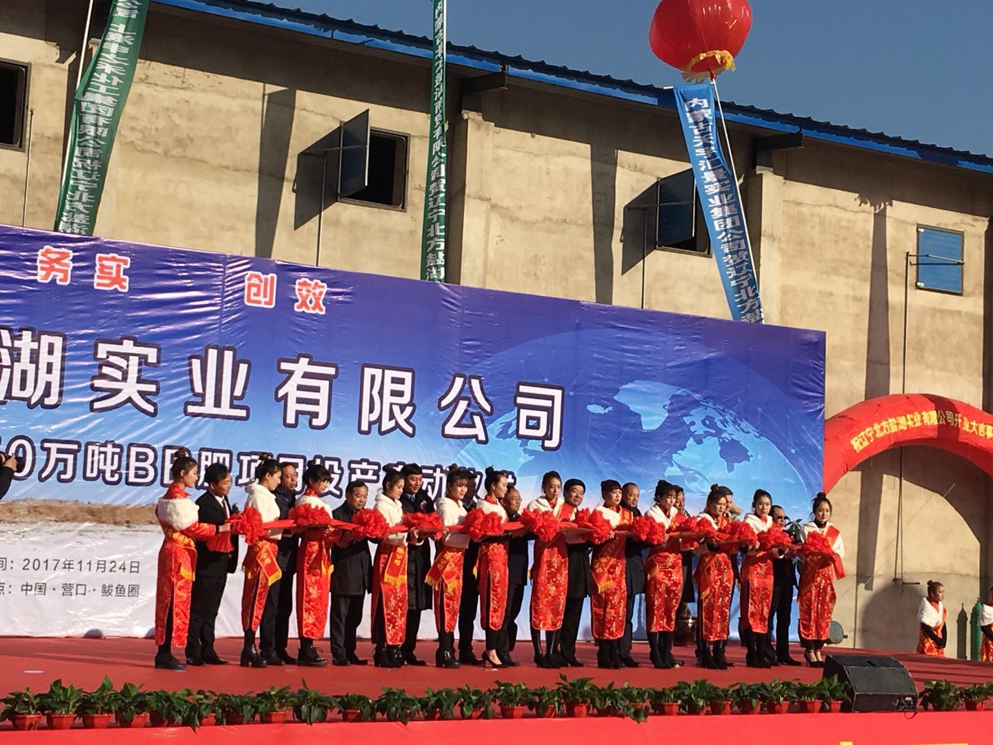 辽宁北方盐湖实业有限公司40万吨/年颗粒钾肥、50万吨/年BB肥项目于2017年11月24日上午在项目所在地辽宁营口市鲅鱼圈区举行了隆重的投产启动仪式。当日来自全国各地的200多家行业界的企业代表400多人受邀参加了仪式。辽宁营口开发区党工委书记、鲅鱼圈区位书记方景广先生、青海盐湖工业股份有限公司董事长王兴富先生;辽宁营口鲅鱼圈区区委副书记、开发区管委会主任、鲅鱼圈政府区长李宏振先生、俄罗斯乌拉尔钾肥北京分公司的总经理司元功先生及项目股东方代表和项目负责人共同为项目剪彩。