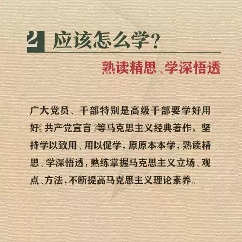 4、《共产党宣言》是一个内容丰富的理论宝库,值得我们反复学习、深入研究,不断从中汲取思想营养。