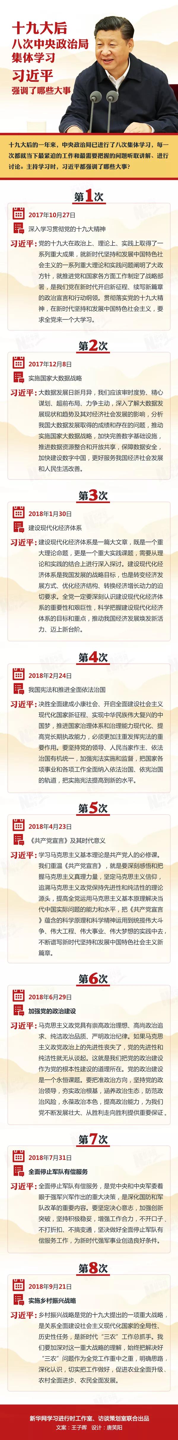八次集体学习,主题是实施乡村振兴战略,也是十九大提出的全新课题。这些都是事关党和国家长远发展的重大问题。